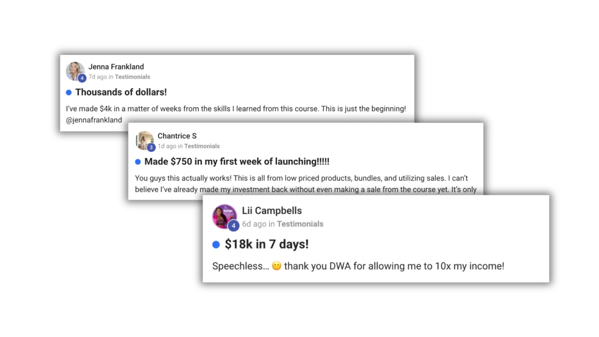 You will have lifetime access to a free community where students can connect with each other and instructors. You can ask questions, celebrate wins, and brainstorm!